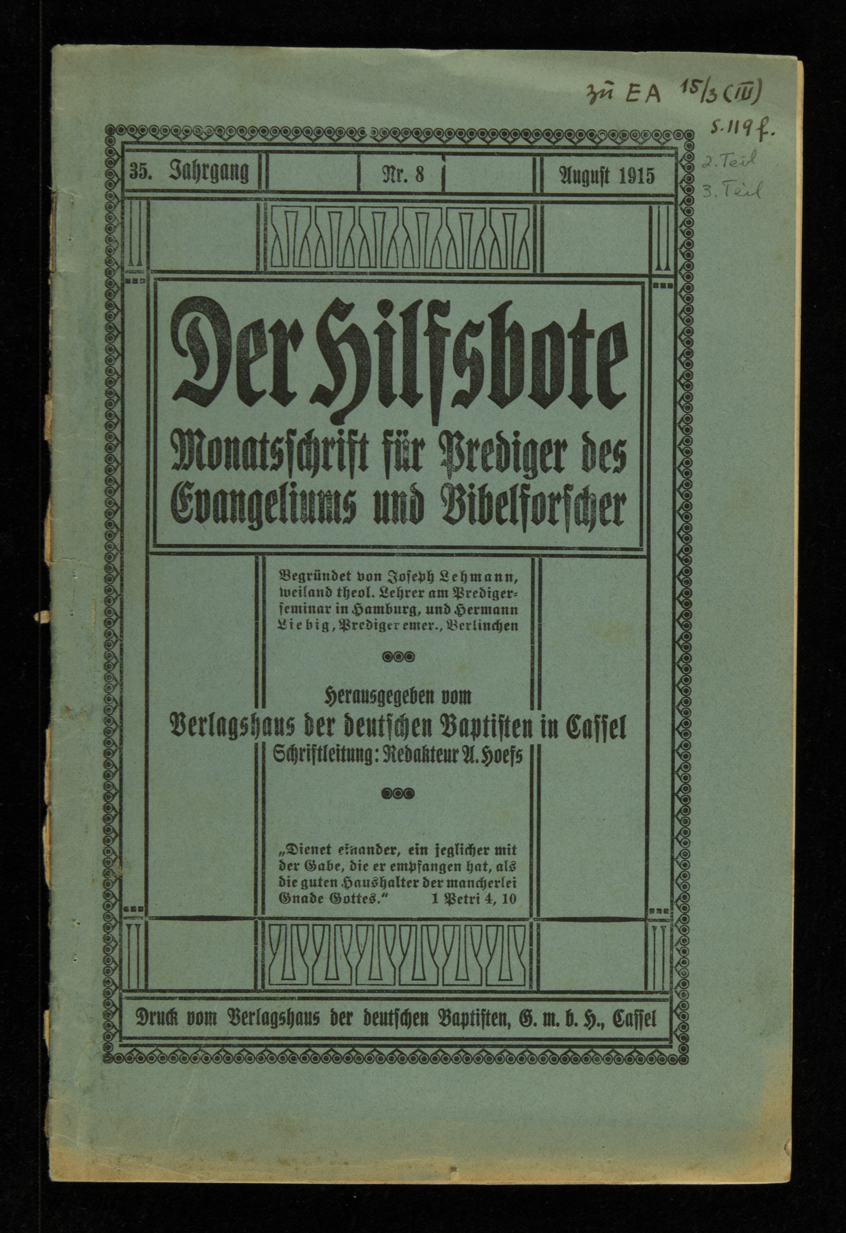 [From a series of talks printed in "Hilfsboten" published by Uncken, Baptist Church--July, Aug, Sept, Oct, 1915]